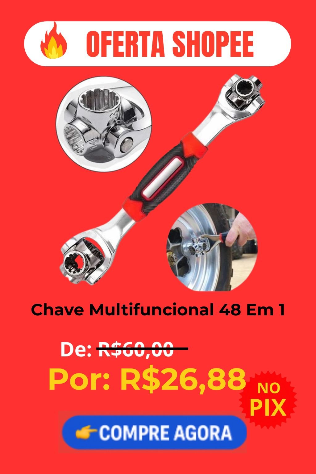 A Chave Multifuncional 48 em 1 é a solução prática para apertar ou soltar porcas e parafusos de diversos tamanhos com facilidade. Com rotação de 360º e design ergonômico, substitui vários soquetes em uma única ferramenta. Ideal para uso doméstico ou profissional!